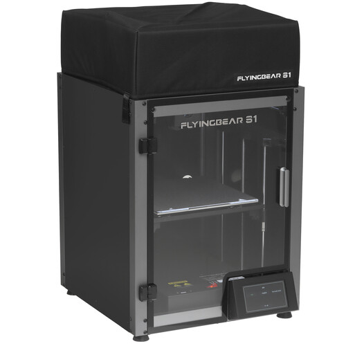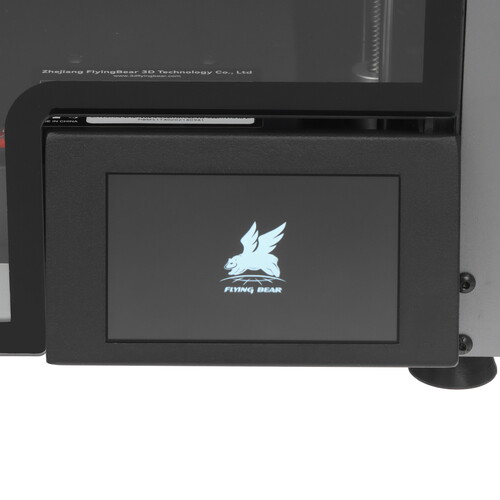Черный 3D-принтер FlyingBear S1 выполнен в закрытом корпусе для безопасной печати и защиты рабочей площадки от случайного попадания пыли и мусора. Такой дизайн позволяет работать с чувствительными к температурным перепадам видами пластика. Сенсорный дисплей с интуитивно понятным меню удобен в настройке параметров и контроле за процессом печати.