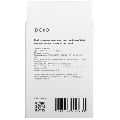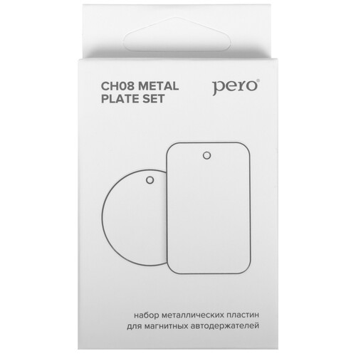 Металлические пластины PERO CH08 предназначены для крепления устройства к магнитному держателю. Размер круглой пластины — 40 мм, размер прямоугольной — 58х40мм. Пластины устанавливаются на чехол или смартфон при помощи клеевой основы.