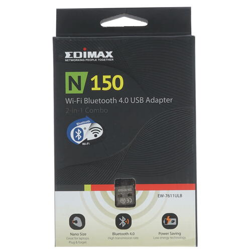 Wifi+Bluetooth адаптер Edimax EW-7611ULB может быть полезен владельцам стационарных компьютеров и ноутбуков. Для работы устройства требуется лишь наличие свободного порта USB. Установив адаптер, вы сможете одновременно организовать модули Wi-Fi и Bluetooth. Вам будут доступны все возможности, предоставляемые с помощью подключения по Wi-Fi и Bluetooth. Адаптер рассчитан на использование стандарта USB 2.0.