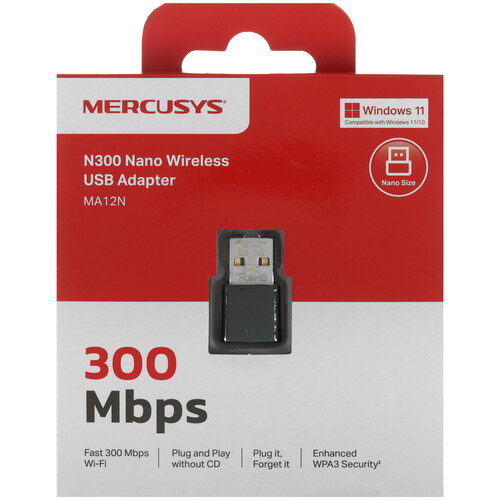 Адаптер беспроводной Mercusys MA12N – cверхкомпактный USB‑адаптер с поддержкой Wi-Fi N300. Благодаря своему сверхкомпактному дизайну MA12N чрезвычайно удобен для использования как дома, так и в дороге. Все, что вам нужно сделать, это подключить этот миниатюрный адаптер к USB-порту компьютера. Затем вы можете оставить его подключенным, не беспокоясь о том, что он выпадет или потеряется. Благодаря встроенному драйверу операционной системы Windows вам просто нужно подключить MA12N к компьютеру и наслаждаться быстрой беспроводной сетью. MA12N полностью поддерживается в последних версиях Windows 11/10 (32/64 бит).