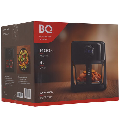 Аэрогриль BQ GR2004 оснащен антипригарным покрытием и съемной стеклянной колбой для простоты ухода. Сенсорная панель делает управление интуитивно понятным. Дисплей показывает выбранную температуру нагрева и время приготовления.