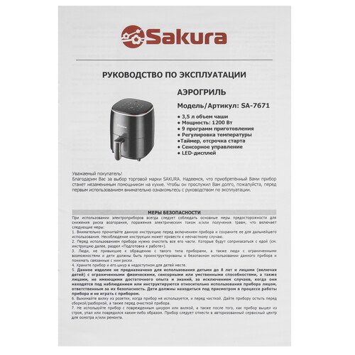 Аэрогриль Sakura SA-7671 черный [9178664]