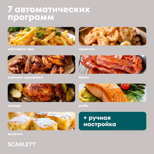 Откройте свои горизонты в кулинарии с помощью аэрогриля SC-AF15S01D! Прибор заменит гриль, тостер, фритюрницу, духовку, дегидратор и шашлычницу. Технология AIR 360 обеспечит равномерный нагрев продукта за счет круговой циркуляции воздуха. Вкусные и быстрые блюда для всей семьи. Сохранение витаминов и минералов благодаря оптимальной температуре и минимальному времени приготовления. Автоматическое продолжение программы после возврата чаши.