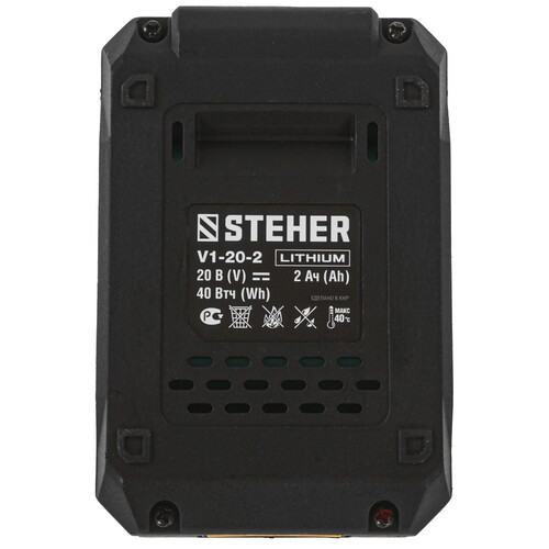 Аккумулятор STEHER V1-20-2 с литий-ионной технологией является надежным источником энергии для различных аккумуляторных инструментов. Он обладает напряжением 20 В и емкостью 2 А*ч, обеспечивая стабильную работу и продолжительное время автономности. STEHER V1-20-2 выполнен в прочном пластиковом корпусе и удобно фиксируется в аккумуляторном отсеке за счет слайдерного механизма. Для повышения безопасности в аккумуляторе реализована электронная система с технологиями защиты от перегрева, перегрузки и глубокой разрядки.