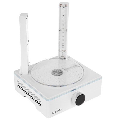 Устройство очистки и засветки Elegoo Mercury XS оснащено моющей станцией с вместимостью 7 л и полимеризационной камерой с вращающейся платформой. Ручная УФ-лампа предназначена для труднодоступных мест печатного объекта и целенаправленной доработки модели.