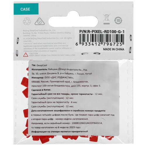 Размеры декоративных элементов DEEPCOOL PIXEL Series – 5.4x5.4x4 мм. Аксессуары изготовлены из резины. Количество в комплекте – 100.