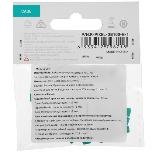 Декоративные элементы DEEPCOOL PIXEL Series выполнены из резины и представлены в зеленом цвете. В наборе вы найдете 100 деталей с точно подогнанными размерами 5.4x5.4x4 мм для легкой установки в решетку корпуса. Декоративные элементы DEEPCOOL PIXEL Series можно использовать для украшения различных моделей корпусов от фирмы DEEPCOOL. Превратите решетку корпуса в холст для творчества и воссоздавайте на нем сцены битв из разных ретро-игр. На решетке при помощи декоративных элементов можно оставлять заметки.