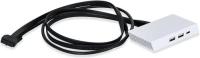 Дополнительный USB-хаб Lian Li O11DE-3X подключается с помощью 80-сантиметрового кабеля. Устройство можно крепить к корпусу в разных положениях. Хаб отличается компактностью. Длина, ширина и высота устройства составляют 122.2, 57.5 и 21.5 мм соответственно. Цвет хаба – белый. В комплектацию модели входит набор крепежа.