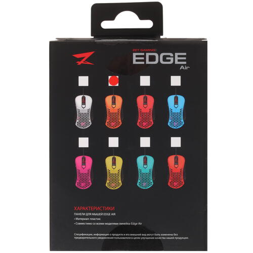 Zet Gaming Edge Air − это комплект сменных панелей, установить которые можно без посторонней помощи. Они выполнены из прочного пластика, который выдерживает любые механические воздействия. Панели подходят для установки на все модели манипуляторов, представленные в линейке Edge Air.