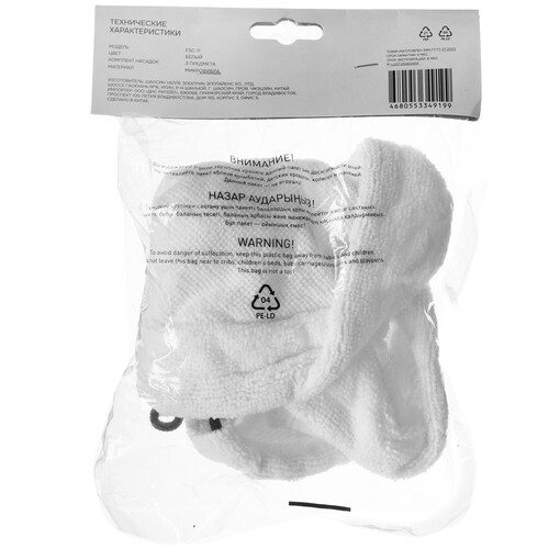 Комплект салфеток DEXP FSC-11 предназначен для совместного использования с пароочистителем DEXP VSC-1500B. В него входят 3 салфетки из микрофибры. Они подходят для очистки тканевых поверхностей, стекол и зеркал, керамической плитки, напольных покрытий. Белые салфетки с мягким ворсом не оставляют царапин и разводов, тщательно собирают пыль, удаляют пятна и загрязнения. Сменные насадки фиксируются с помощью затяжного шнурка и резинок. Комплект салфеток DEXP FSC-11 подходит для многоразового применения.