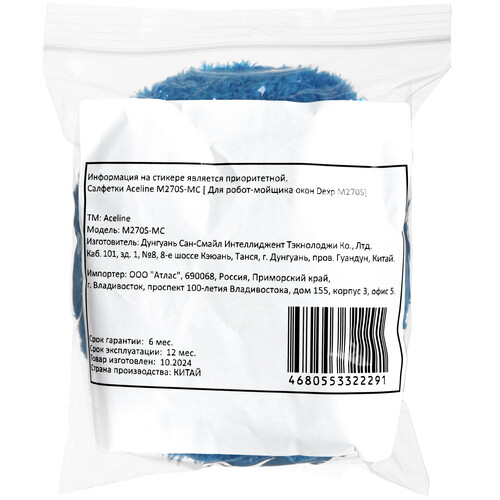 Комплект салфеток Aceline M270S-MC подходит для робот-мойщика окон DEXP M270S. Изделия можно использовать для сухой и влажной уборки. Салфетки из хлопка и полиэстера подходят для многоразового применения.