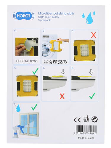 Модель Hobot HB268A02 вы сможете использовать несколько раз. Так, после использования вам достаточно поместить ее в стиральную машину для последующей очистки от загрязнений. Этот аксессуар подходит для использования с роботами-пылесосами Hobot. Комплект содержит 3 салфетки желтого цвета.
