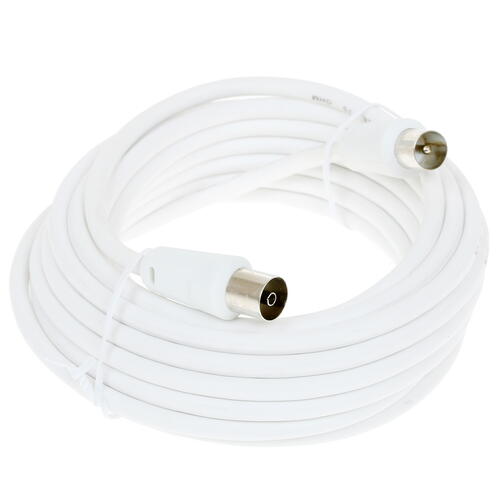 Антенный кабель DEXP 3C2V TV - TV обладает классической белой расцветкой оплетки и корпусов штекеров, поэтому его не составит труда визуально выделить среди других черных кабелей, подключенных к телевизору. Внушительная длина, равняющаяся 5 метрам, предоставляет пользователю комфорт и свободу при подключении телевизионной аппаратуры друг к другу, даже если она располагается на большом расстоянии друг от друга. Каждый из концов кабеля оборудован разъемам TV, отличие между ними состоит в их виде.
