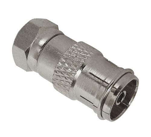 Антенный переходник (штекер F - гнездо TV) REXANT предназначен для соединения ТВ-гнезда с делителями, усилителями сигналов, ТВ приставками и другими ТВ устройствами.