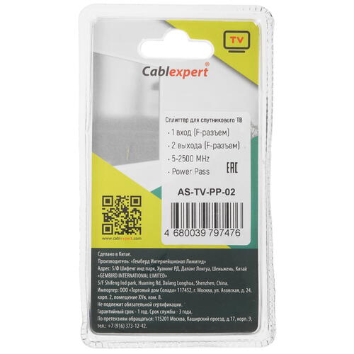 Сплиттер антенный Cablexpert AS-TV-PP-02 [5452601]