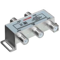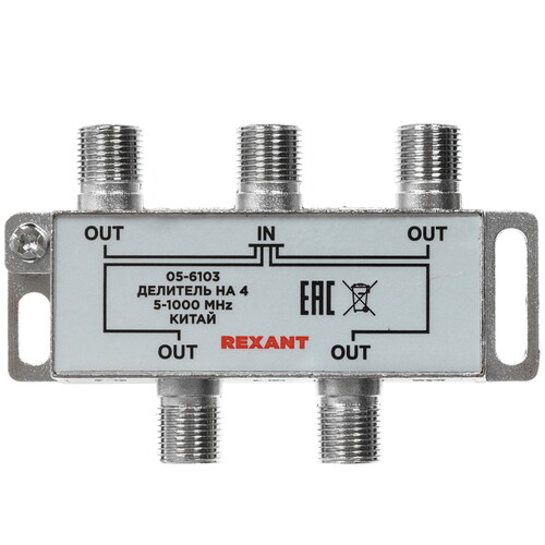 Телевизионный делитель или сплиттер предназначен для телевизионных систем и используется в домах и квартирах, где требуется подключить несколько телевизионных аппаратов к одной антенне. Сплиттер распределяет поступающий на вход сигнал поровну на его выходы, что обеспечивает одинаково четкое изображение на всех подключенных устройствах. Он имеет четыре выхода для сигнала и подключается с помощью стандартных F-разъемов. Делитель комплектуется необходимыми F-разъемами. Пайка внутри делителя осуществляется с использованием серебренносодержащего припоя, что позволяет получить сигнал высокого качества и увеличить надежность. Делитель имеет надежный металлический корпус. Полная комплектация ТВ сплиттера (F-разъемы в комплекте) позволяет удобно и быстро монтировать телевизионный кабель и подключать аппаратуру. Данный делитель подходит для сигналов с частотой 5-1000 МГц, что соответствует стандартному эфирному телевидению.