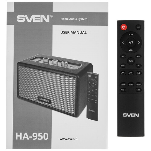 Аудиосистема SVEN HA-950 черного цвета работает от сети и служит для воспроизведения MP3 мелодий. Он может воспроизводить звук с USB, microSD, microSDHC накопителей, через Bluetooth и AUX. Формат системы 2.1 суммарно выдает звук мощностью 60 Вт. Устройство возможно объединять с такой же системой в стереопару для более объемного звучания. Управлять моделью можно с помощью ПДУ.