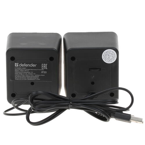 Колонки Defender SPK-22 – это миниатюрное устройство, разработанное для ноутбука. Их мощность составляет 5 Вт. Минимальная/максимальная воспроизводимая частота – 200 и 18000 Гц соответственно. Колонки не нуждаются в сетевом источнике питания, они работают от USB-разъема компьютера. Выход – линейный (стерео). Для подачи звука их необходимо подключить к аудиоразъему персонального компьютера.