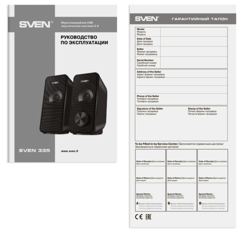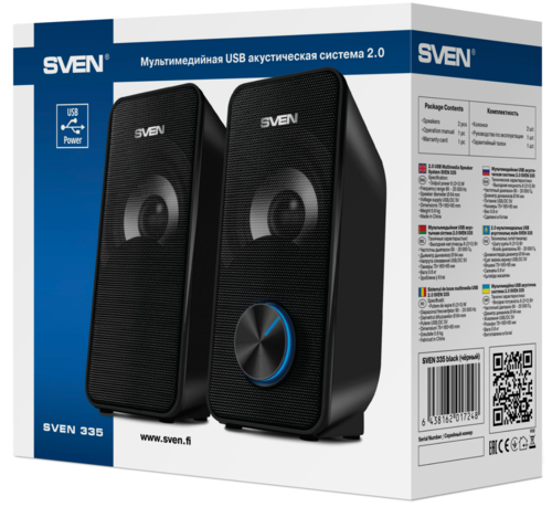 Sven 335 - небольшие компьютерные колонки формата 2.0 с питанием от USB-порта, мощностью 6 Вт в пластиковом корпусе.