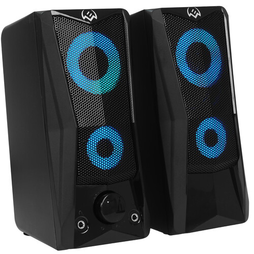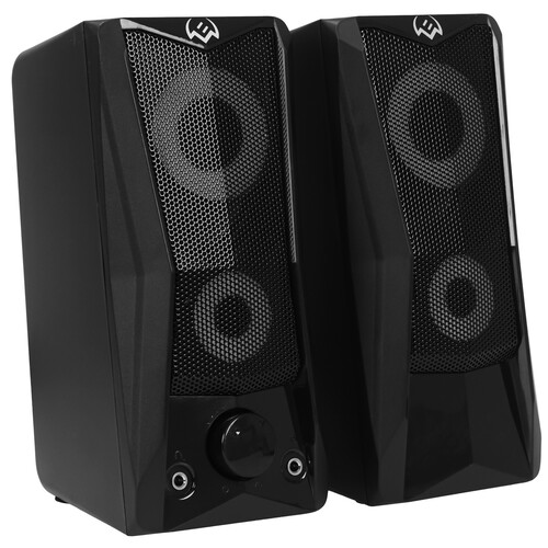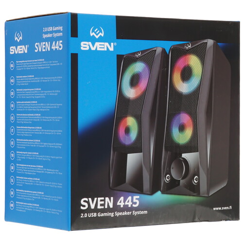 Черные колонки SVEN 445 подключаются к источнику питания через порт USB. Поэтому если вы планируете использовать их в разных местах, убедитесь, что там есть возможность такого подключения. Регулировка громкости происходит с помощью внешнего регулятора на боковой панели. Формат акустической системы 2.0, это значит, что обе колонки воспроизводят стереозвук.