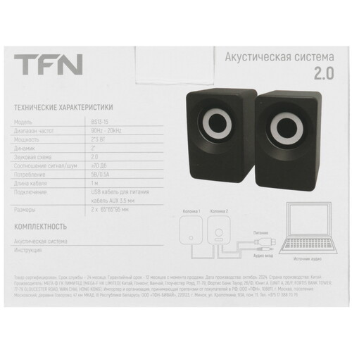 Компактная акустическая система TFN BS13-15BK - это стильное решение для вашего рабочего пространства. Обладая общей мощностью 3 Вт, колонки выдают чистое и хорошее звучание, поддерживая воспроизведение в диапазоне 90Hz - 20kHz.
