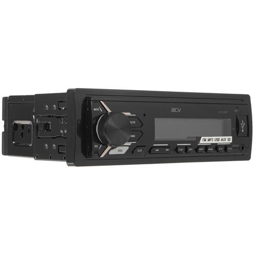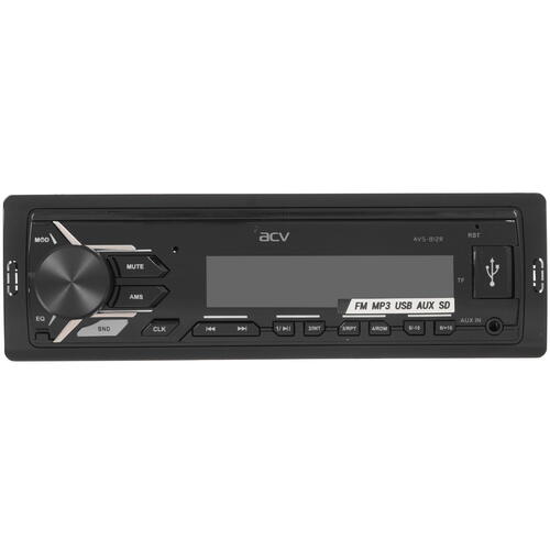 Корпус автопроигрывателя ACV AVS-812R соответствует формату 1 DIN. На его передней панели расположен небольшой LCD-дисплей с подсветкой и набор механических кнопок. Благодаря им вы сможете удобно управлять воспроизведением аудио и работой самого автопроигрывателя. Комплектация устройства включает в себя монтажный набор.