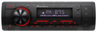 Автомагнитола стандартного размера 1DIN, которая обеспечивает прием радиостанций в диапазоне FM, воспроизведение медиафайлов, записанных на карты памяти USB / microSD, передачу звука с внешних источников, а также управление мобильным телефоном через интерфейс Bluetooth Hands-Free, красный цвет подсветки кнопок.
