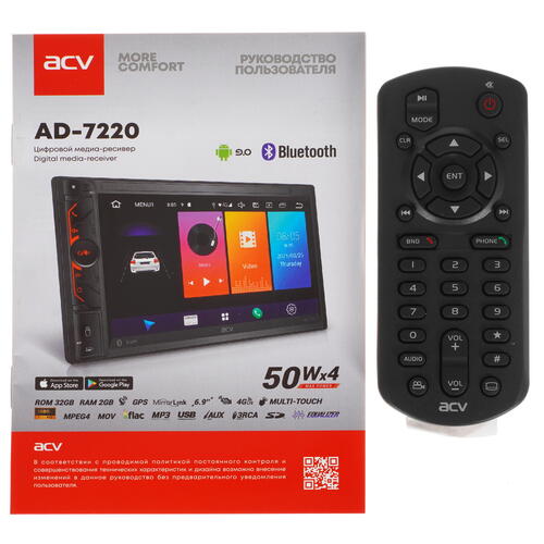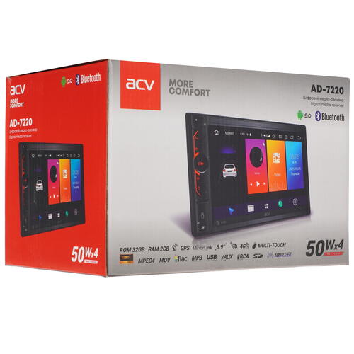 Автопроигрыватель ACV AD-7220 отличается широкими функциональными возможностями благодаря интегрированным модемам 4G LTE и Wi-Fi. Он способен обеспечить стабильный доступ к сети Интернет и позволит всегда оставаться на связи. Данная модель поддерживает 4 канала звука и выходную мощность в пределах 200 Вт. В качестве источников воспроизведения музыки могут использоваться Bluetooth, порт USB, разъем AUX, считыватель карты памяти. Дисплей LCD позволяет легко управлять доступными настройками и просматривать необходимую информацию. Среди других особенностей ACV AD-7220 отмечаются FM-радио, GPS-навигация, поддержка камеры заднего вида, пульт ДУ.