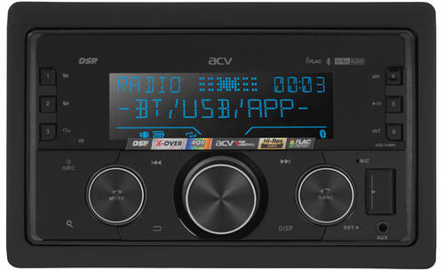Автопроигрыватель ACV ADX-211BM выполнен в форм-факторе 2 DIN. Для формирования реалистичного звука при проигрывании аудиоконтента он оснащен звуковым процессором DSP и встроенным усилителем с поддержкой 4-х каналов мощностью по 50 Вт. На передней панели устройства расположены дисплей и кнопки с многоцветной подсветкой, которые позволяют управлять параметрами воспроизведения и просматривать информацию.