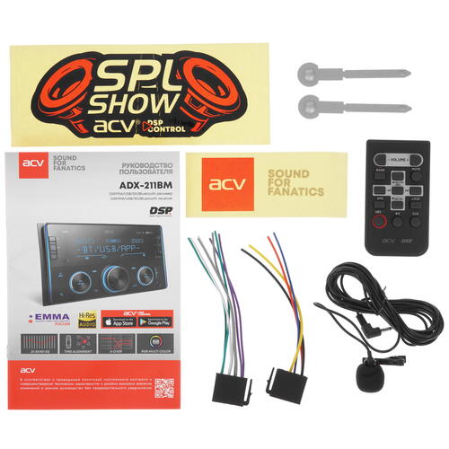 ACV ADX-211BM поддерживает технологию Bluetooth для беспроводной синхронизации с мобильными устройствами. Из источников воспроизведения дополнительно предусмотрены FM/AM-проигрыватель радиостанций, порт USB, аудиоразъем AUX. В комплекте поставляется пульт ДУ для удобного управления на расстоянии.