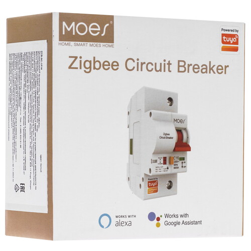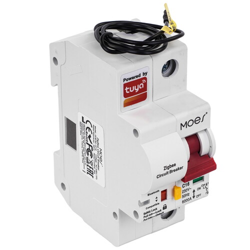 Умный автоматический выключатель Moes (ZCB-SC-1P16) [16A, ZigBee] позволяет управлять электроприборами дистанционно различными электроприборами, например освещением или обогревателями.