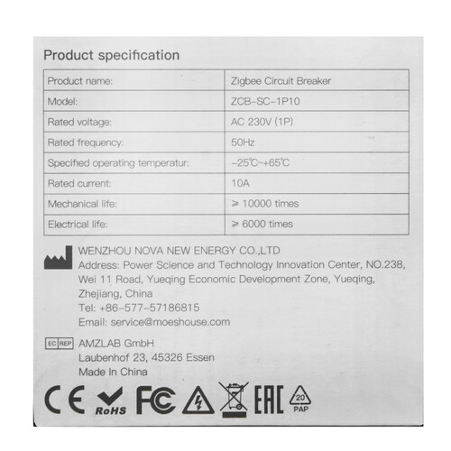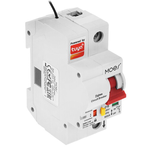 Выключатель автоматический Moes Zigbee circuit breaker 1P 10A ZCB-SC-1P10 позволяет управлять электроприборами дистанционно различными электроприборами, например освещением или обогревателями.
