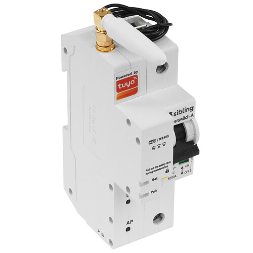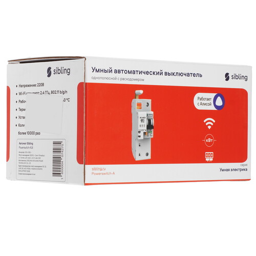 Выключатель Sibling Powerswitch-A16 получил корпус из пластика с матовой поверхностью. Он защищен по классу IP20 и устойчив к каплям воды. Управлять выключателем можно с помощью сенсорной панели, голосовых помощников Алисы, Маруси или удаленно, через приложение. Модель может выдержать максимальную нагрузку до 1.1 кВт и силу тока 5 А. Выключатель устанавливается на DIN рейку в электрический щиток вместо обычного автомата.
