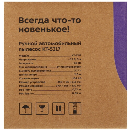 Ручной пылесос КТ-5317 — это портативное и компактное устройство, которое легко справится с пылью, мусором, крошками, волосами, шерстью животных, песком, а также с небольшим количеством жидкости при уборке вашего автомобиля.
