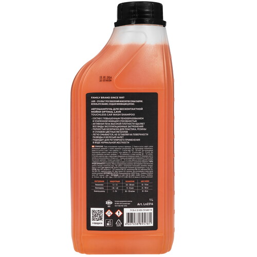 Автошампунь для бесконтактной мойки LAVR Ln2316 имеет состав с повышенным пенообразованием и усиленной моющей способностью. Активная пена высокой плотности удаляет с кузова и стекол автомобиля все виды эксплуатационных загрязнений. Средство безопасно для пластика, резины и сплавов цветных металлов.