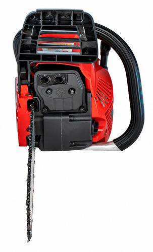 Пила оснащена двигателем IE46F с рабочим объемом 55,8 см3, что обеспечивает надежную мощность. Минимальная скорость вращения коленвала при срабатывании цепи составляет 3000 об/мин, а минимальная скорость включения сцепления - 4200 об/мин, что делает работу более безопасной и удобной. Цепь обеспечивает прочность и долговечность. Кроме того, пила оснащена системой пуска двигателя с ручным стартом, что делает запуск быстрым и простым. С габаритами 425 x 245 x 285 миллиметров и весом всего 5,5 килограмма, пила маневренна и удобна в использовании.