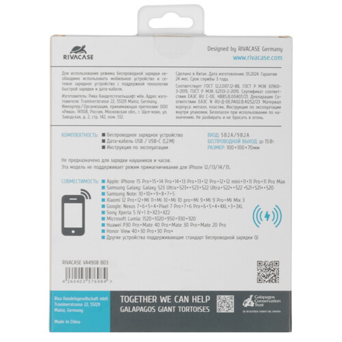 Беспроводное зарядное устройство RIVACASE VA4908 черный [9260629]
