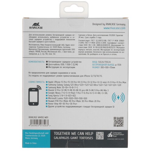 Беспроводное зарядное устройство RIVACASE VA4912 белый [9260634]