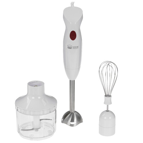 Блендер погружной HOME ELEMENT HE-KP839 сделан из пластика. Его корпус герметичен и защищен от поражения током. Чаша для измельчителя объемом 500 мл позволяет за один раз приготовить 1-2 порции блюда. Петля для подвешивания позволяет хранить устройство в вертикальном положении.