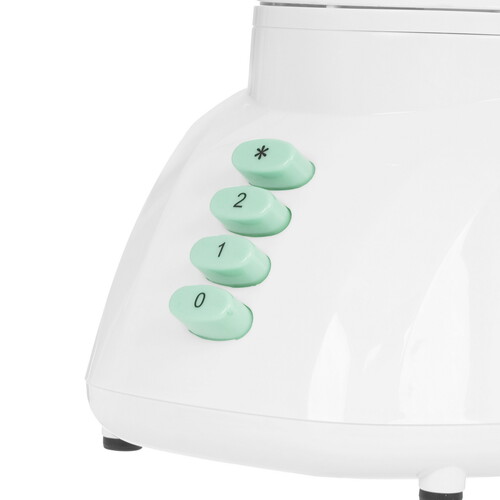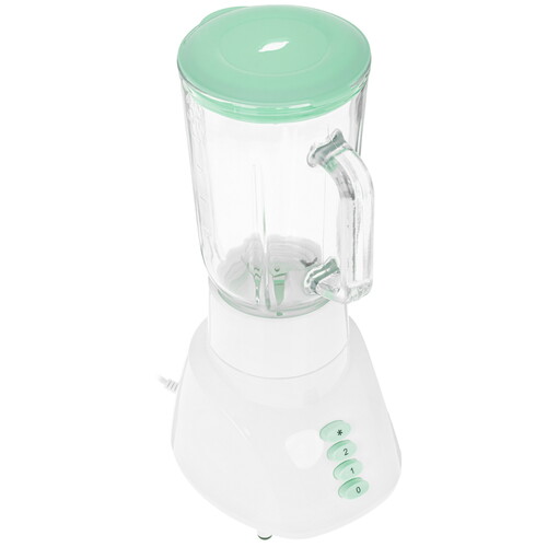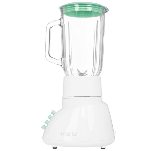 Блендер стационарный Marta MT-1569 бело-зеленого цвета оборудован чашей из стекла объемом 1.2 л, с удобной ручкой. С его помощью можно быстро и легко измельчить нужные для основного блюда ингредиенты, приготовить соус или взбить десертный крем. При этом не требуется держать блендер в руках: достаточно просто положить в чашу продукты и выбрать одну из двух скоростей. Наличие импульсного режима предусматривает возможность крошить или взбивать ингредиенты до нужной консистенции. Управлять режимами можно с помощью кнопок на корпусе прибора.