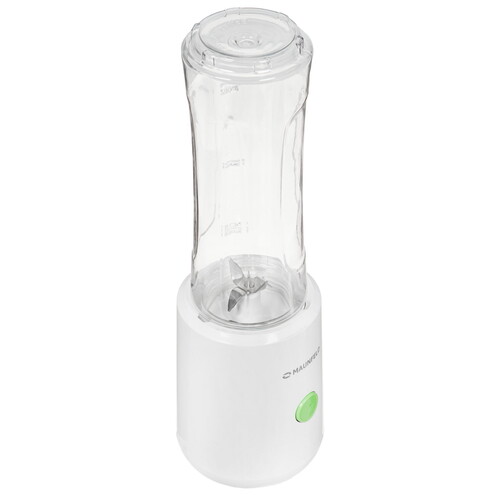 Блендер MAUNFELD MF-132W представлен в белом пластиковом корпусе и обладает большим набором функций. Он может взбивать, смешивать, измельчать продукты, создавать однородную консистенцию из жидких ингредиентов. Рабочая часть блендера имеет форму бутылки: в нее помещаются продукты для измельчения или взбивания при помощи установленного ножа. Бутылка выполнена из цельного стекла и поддерживает объем 600 мл. Она укомплектована крышкой, которая плотно закрывается, что позволяет не переливать готовую смесь в другую посуду и использовать бутылку.