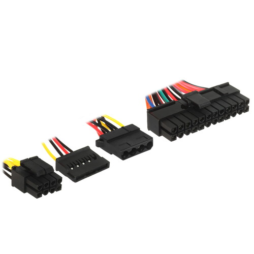 Блок питания ExeGate CP450 с номинальной мощностью 450 Вт обеспечивает до 350 Вт питания по линии 12 В для энергоемких компьютерных компонентов. Подключение комплектующих организовано через набор разъемов: основной разъем 20+4 pin, разъем 4 pin для процессора, 3 разъема SATA и 2 разъема Molex для различного оборудования. Также предусмотрен разъем для Floppy-дисковода, который может пригодиться в старых системах.