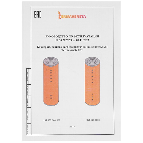 Бойлер косвенного нагрева Termaveneta IBT 150 NEW предназначен для напольной установки. Внутренний бак объемом 150 л изготовлен из нержавеющей стали марки SUS 304. Это гарантирует устойчивость к коррозии. В качестве термоизоляции применяется самозаполняющаяся пенополиуретановая пена толщиной 50 мм. В конструкции модели предусмотрен разъем под установку резьбового ТЭНа.