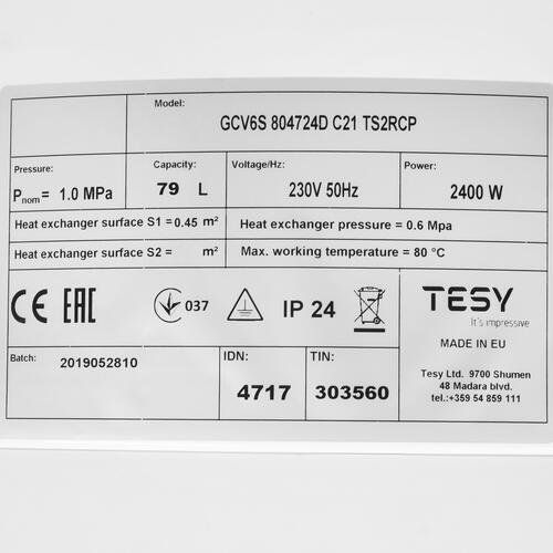 Бойлер косвенного нагрева TESY GCV6S 804724D C21 TS2RCP [8196326]