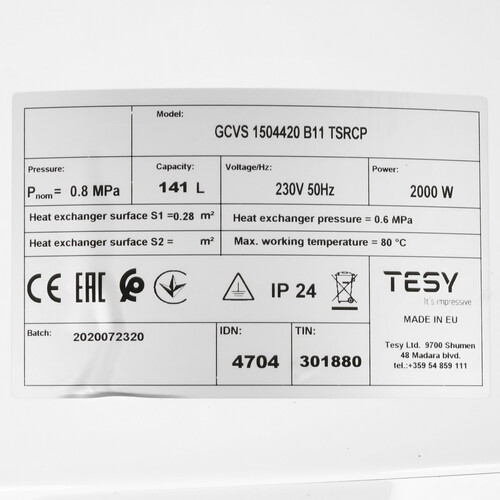Бойлер косвенного нагрева TESY GCVS 1504420 B11 TSRCP [8196334]