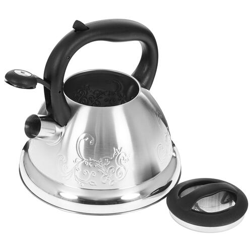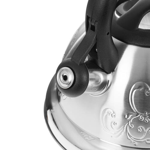 Чайник для плиты Lara LR00-56 оформлен в классическом стиле с изысканным тиснением. Он изготовлен из нержавеющей стали с комбинированием матовой и зеркальной поверхностей. Материал безопасен для здоровья, устойчив к механическим воздействиям и появлению ржавчины.