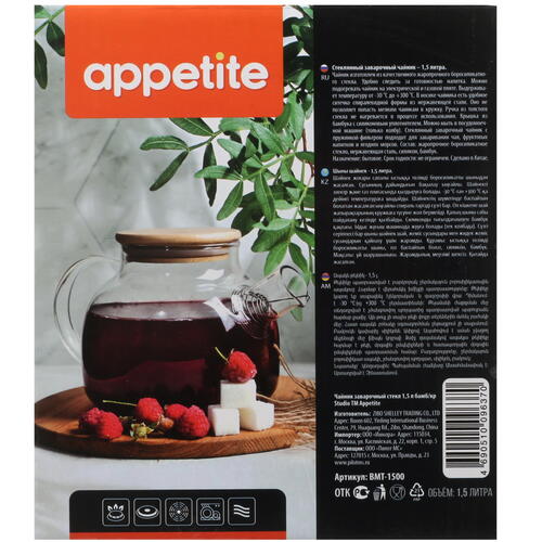 Чайник заварочный Appetite Studio BMT-1500 прозрачный [5085211]