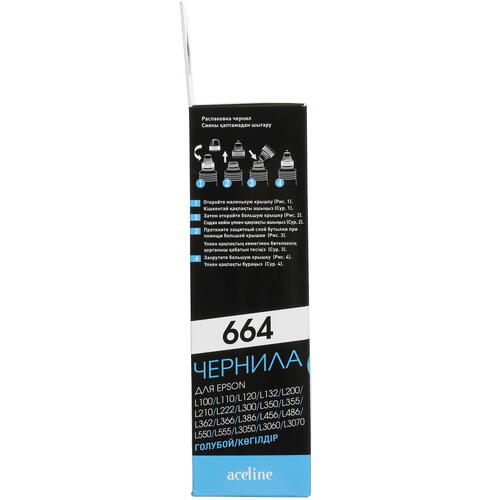 Чернила водорастворимые Aceline T6642 могут похвастаться точным соответствием требованиям и спецификациям, предъявляемым рядом струйных принтеров и МФУ фирмы Epson к расходным элементам. Это обеспечивает не только качественную печать, но и стабильную работу устройства. Состав водорастворимых чернил Aceline T6642 предполагает их использование для печати фотографий на специальной бумаге для струйных принтеров или фотобумаге для более реалистичной цветопередачи и четких контуров. Поставка голубого тонера осуществляется в бутыльке емкостью 70 мл.