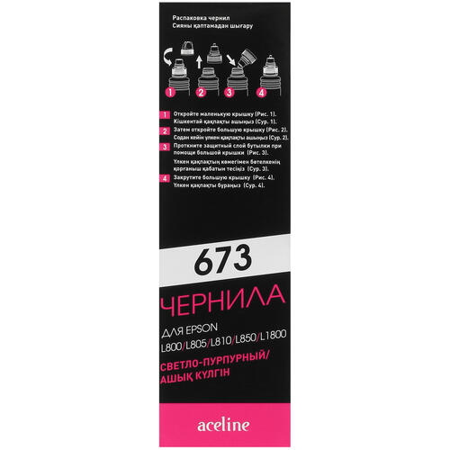 Чернила водорастворимые Aceline T6736 подойдут для пяти моделей фотопринтеров Epson за счет точного соответствия требованиям, которые совместимые устройства предъявляют к расходным элементам. С этими чернилами вы сможете не только сэкономить на приобретении расходников, но и добиться высочайшего качества печати изображений или текста. За счет своего состава чернила Aceline T6736 обеспечивают реалистичную цветопередачу при печати на специальной бумаге для струйных принтеров или на фотобумаге. Модель светло-пурпурного цвета обладает стандартной емкостью 70 мл.