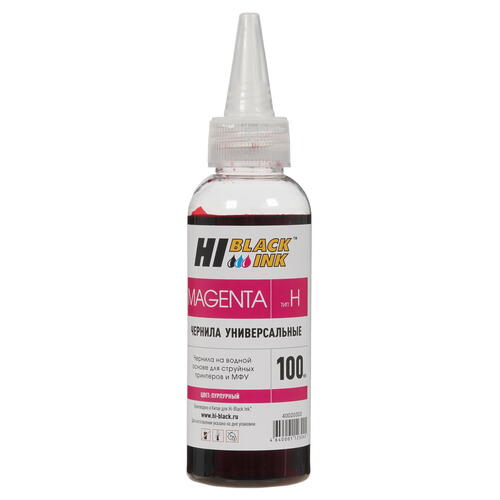 Чернила водорастворимые HI Black 15070103981U используют пурпурный краситель и поставляются в удобной емкости объеме 100 мл. Данная заправка может использоваться для цветной профессиональной и любительской печати и совместима с картриджами различных струйных принтеров HP. С помощью этих чернил вы сможете создавать яркие фотографии, первоклассные рекламные материалы, а также другие виды продукции.